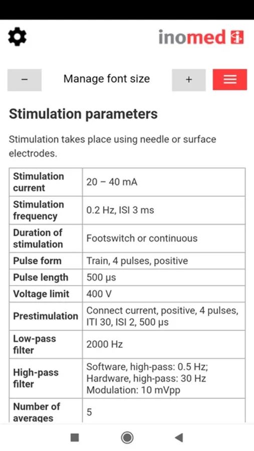 This app helps you to set up your inomed System for all kinds of IONM applications. From AEP to VEP, you can find all settings, electrode placement and information on interpretation in compact form. Includes coloured muscle atlas for electrode positioning and troubleshooting schemes. A useful companion for (not only) inomed IONM users.