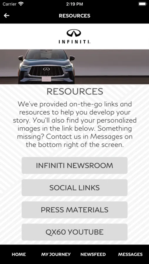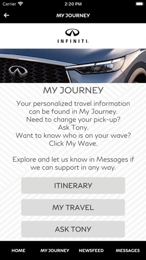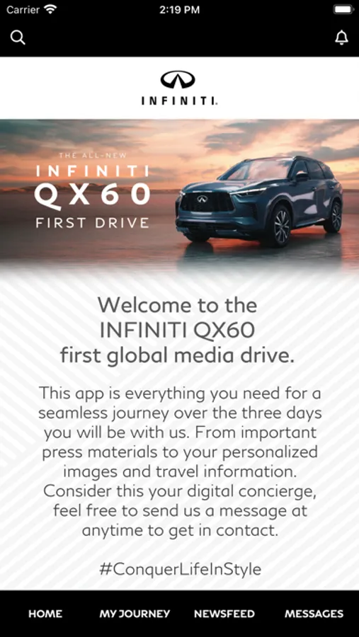 Invite only app for Infiniti North America media events and meetings. An app to help support Infiniti events by providing event information and ways to engage with various Infiniti event experiences.