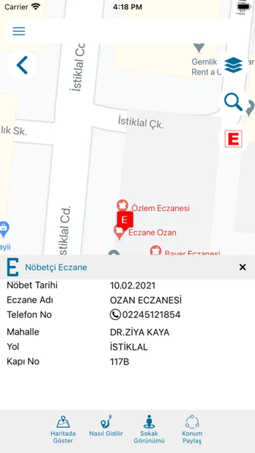 Gemlik'teki eczaneler, hastaneler, okullar, camiler vb. bilgileri sorgulayabilir ve yol tarifi alabilirsiniz.