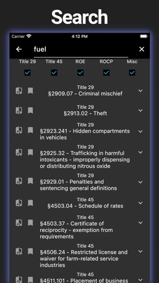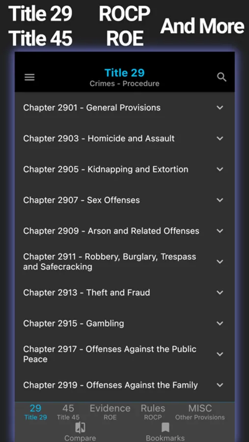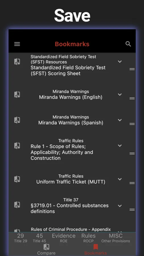 - Bookmarks: Bookmark your favorite statutes for easy reference