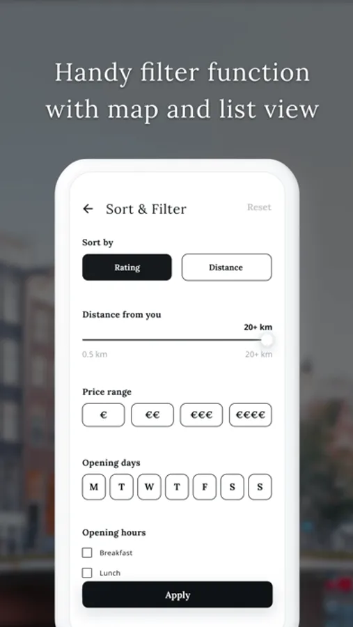 Use the map to quickly find restaurants & bars near your location or use the handy filter function to see what’s open today or any other day of the week. Filter options include: price range, meal time (breakfast, lunch, dinner), vegetarian options and more.