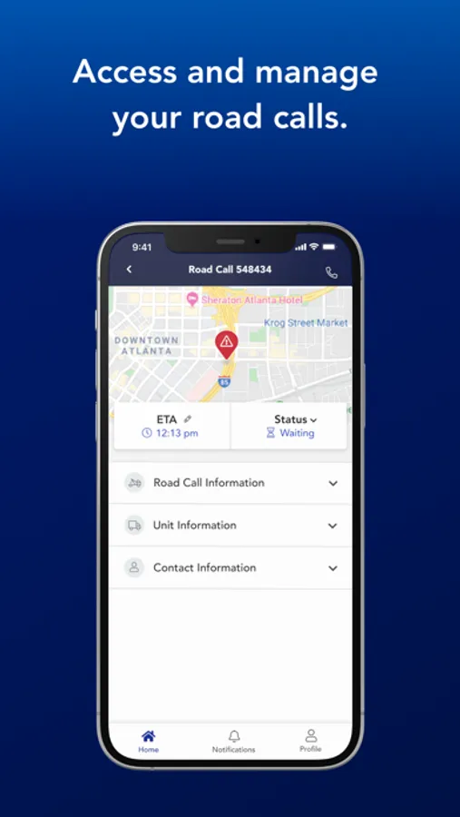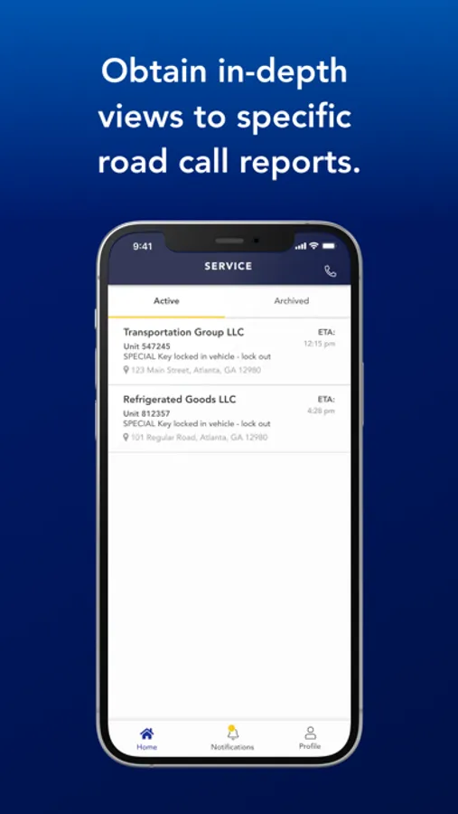 • Road call report details – receive access to issues, breakdown location, unit details plus service history and contact information for a road repair order