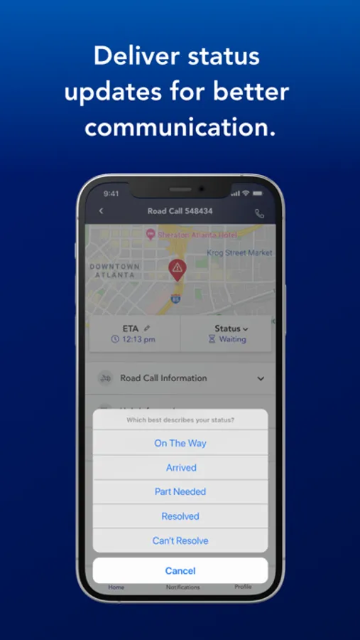• Push notifications – sent to the provider when a road call location has changed or been canceled.
