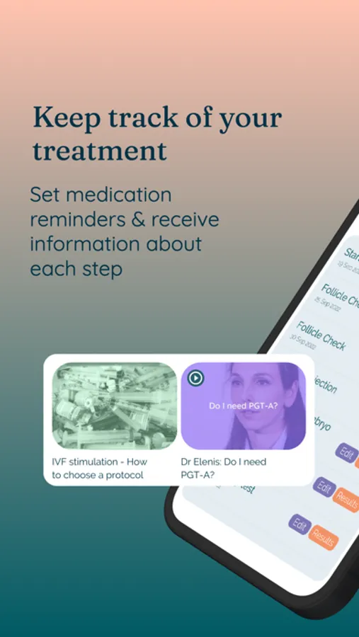 Never miss a medication or appointment. Tilly creates a personalized treatment schedule based on your specific fertility treatment and gives you reminders of any upcoming events.