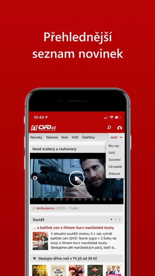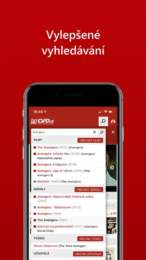 Kompletní obsah webu ČSFD a jeho uživatelských funkcí, přizpůsobený všem velikostem displejů. Nové obsahové funkcionality zahrnují: