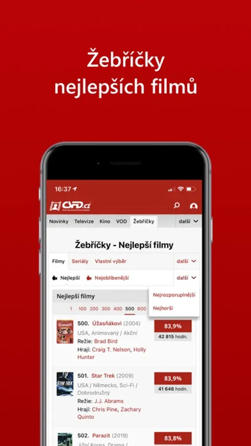 3) Žebříčky nejlepších filmů a seriálů rozšířené z 300 na 1000 pozic.