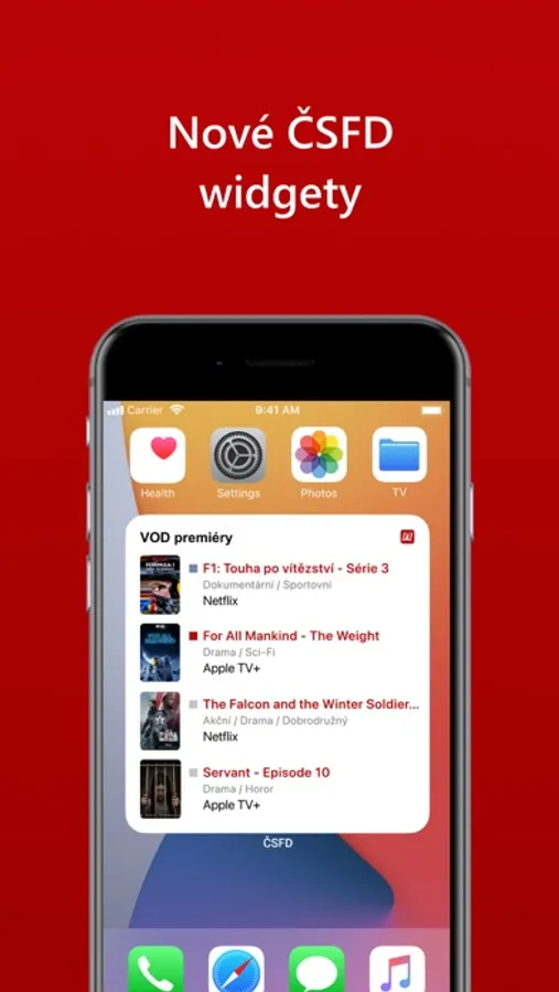 1) Praktické iPhone widgety s přehledy premiér na VOD, v kinech a TV tipy dne.