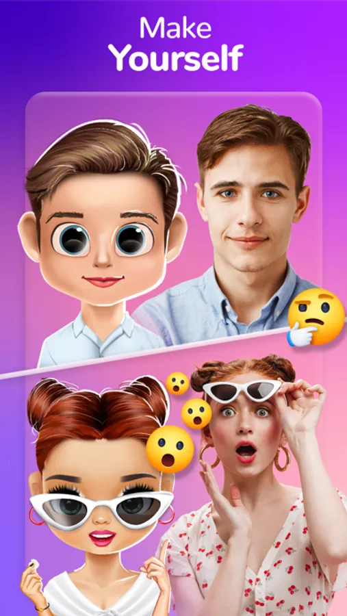 ** Express emotions on your avatar's face with different eye shapes, eyebrows and mouth positions