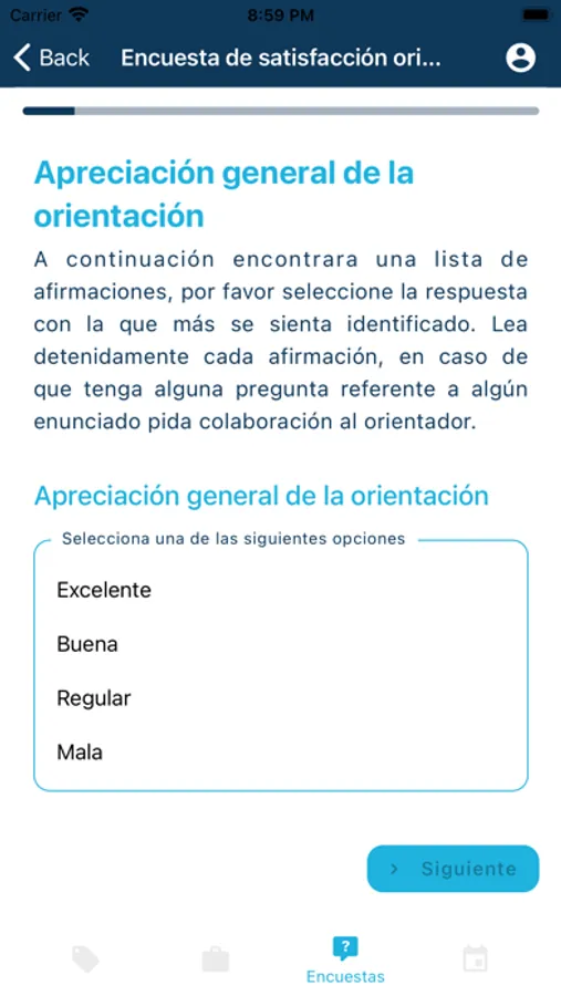 En éste módulo encontrarás las encuestas institucionales de seguimiento al Graduado (M0, M1 y M5) y algunas encuestas de satisfacción respecto a nuestros servicios.