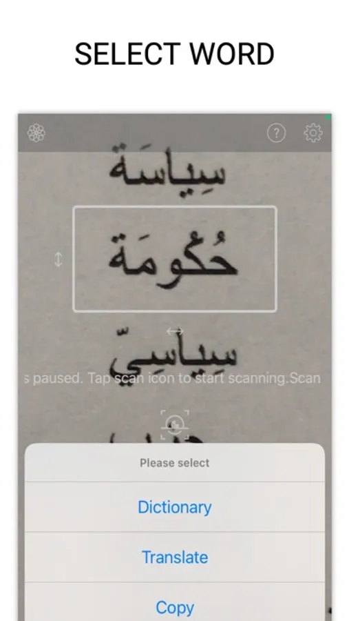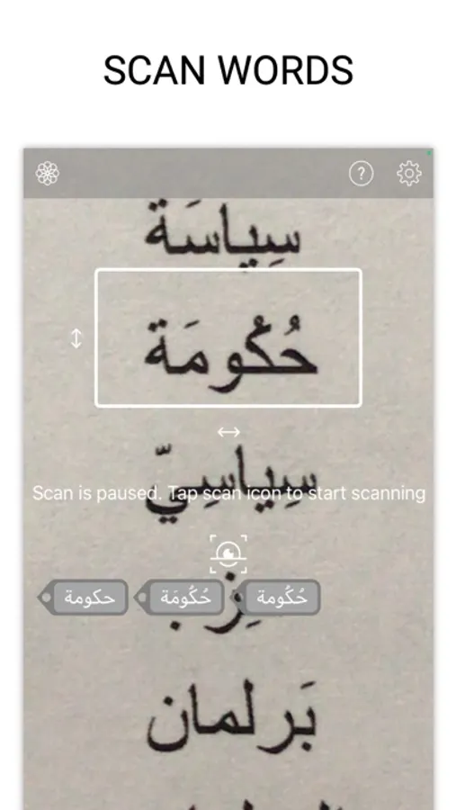 Scan words with OCR and tap the word you want to check. You can scan without internet after upgrading.