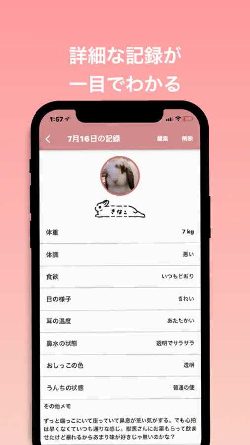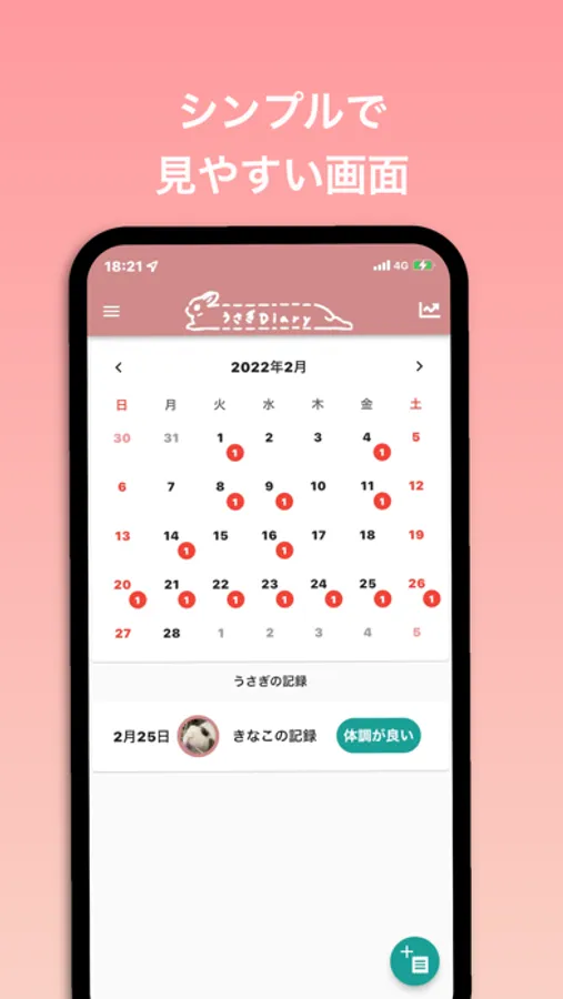 うさぎDiaryは体調を崩しやすいうさぎの健康管理を目的とした記録アプリです。