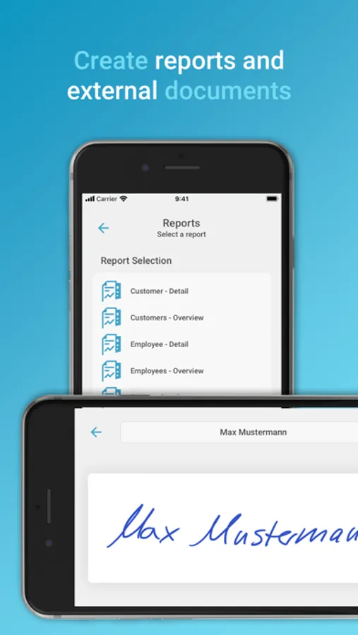 You do not need an internet connection to use the app. All your data is securely stored locally on your device. There is no transfer of data to external servers. Even report and document generation is done directly on your device. Besides data protection, this also offers the advantage of generating and signing performance reports anywhere, even in places with poor or no internet (basement, etc.). You can use the app even in flight mode.