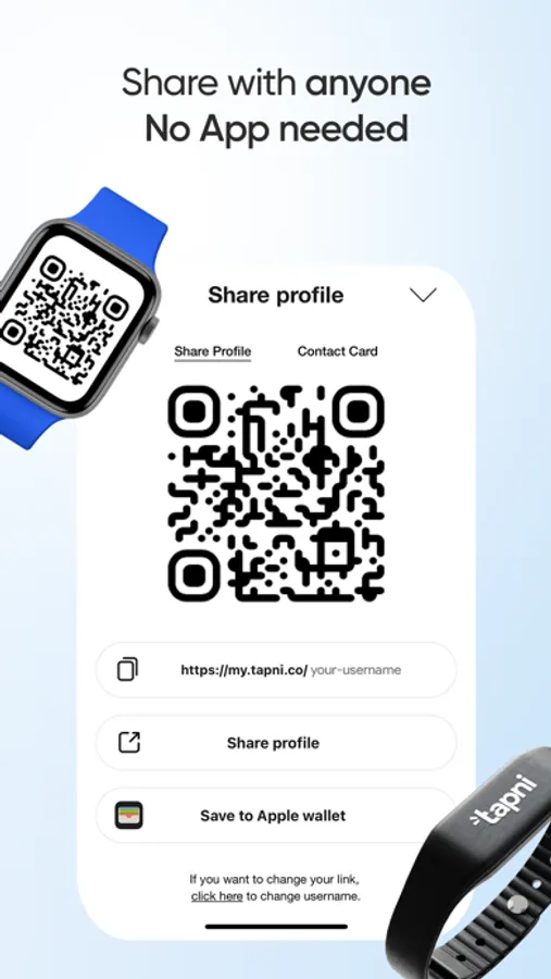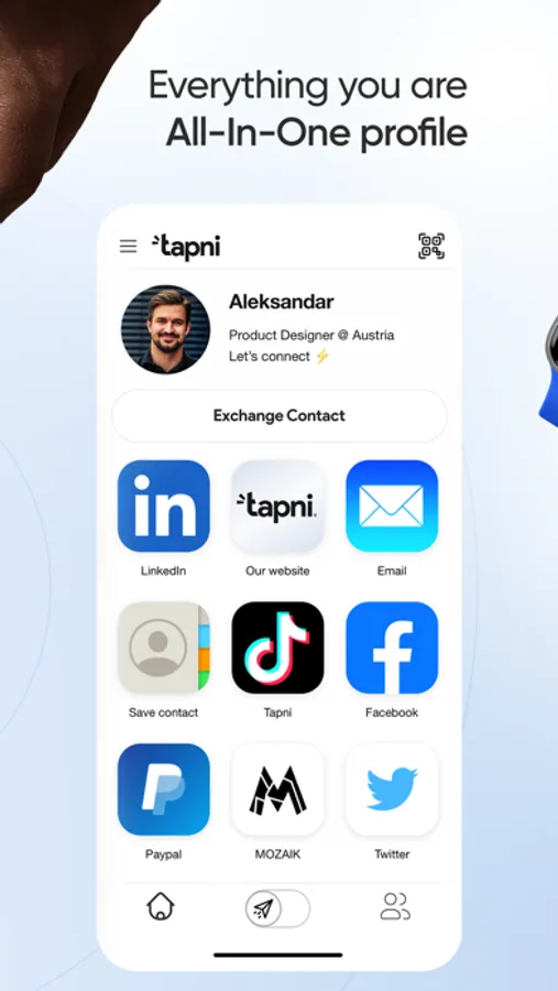 Tapni app is where you easily access Tapni profile and manage how you share your info.