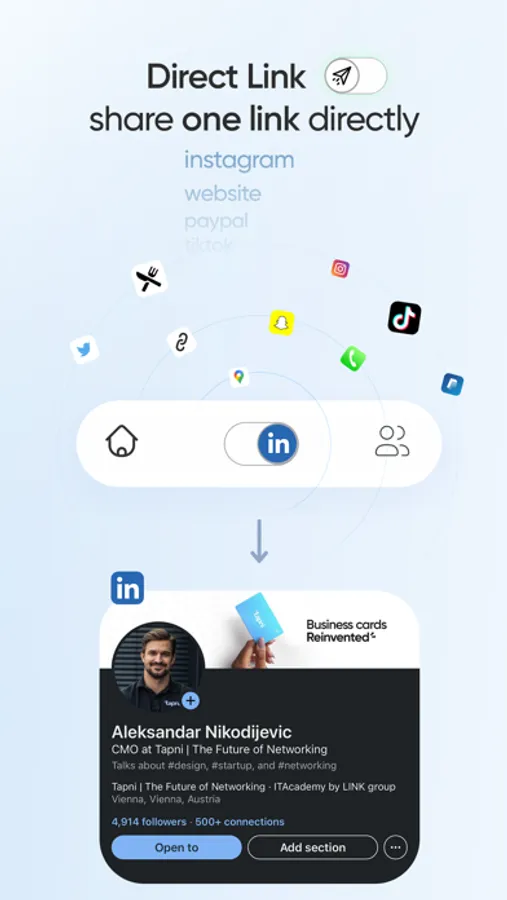 With our direct feature, you can open Instagram, TikTok, LinkedIn, or any other link directly.