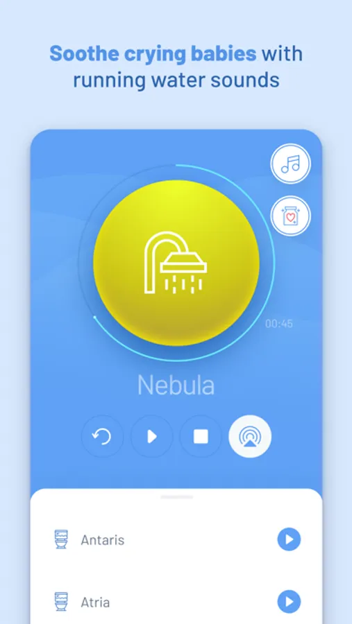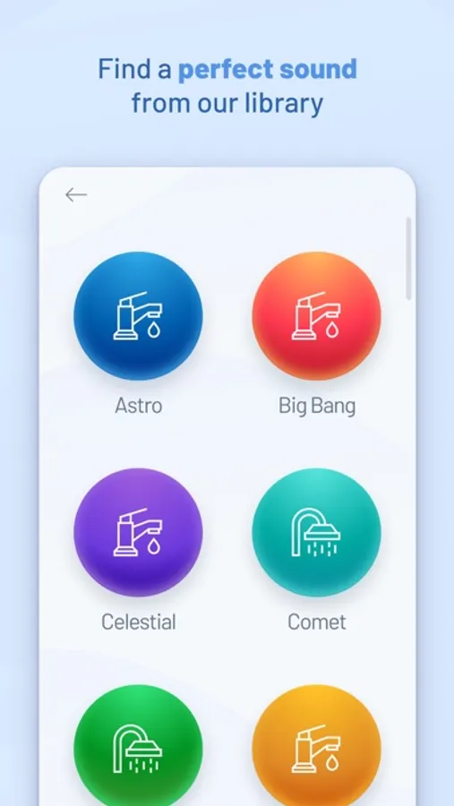 • Select and favorite the water sounds that most closely mimic the sounds in your bathroom