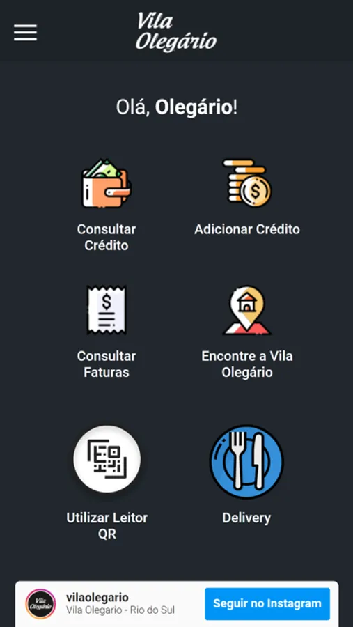 - Adicionar crédito nos estabelecimentos Vila Olegário