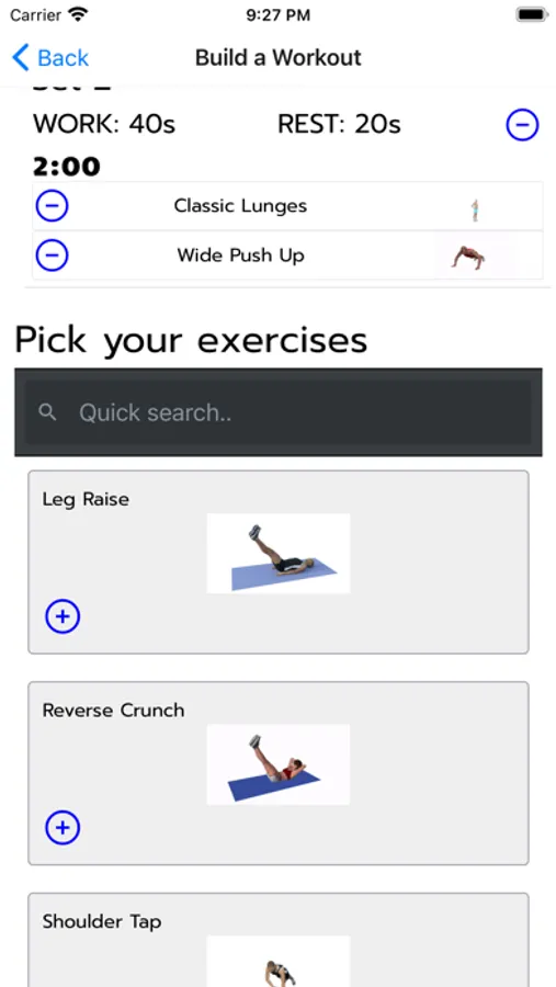 Build workouts that suit your routine. If you want a 5-minute workout, 7 minute workout, 10 minute workout, a 15 minute workout or a 30 minute workout we have the exercises for you. Workout Plan let you choose a workout and lets you focus on building your strength and fitness.
