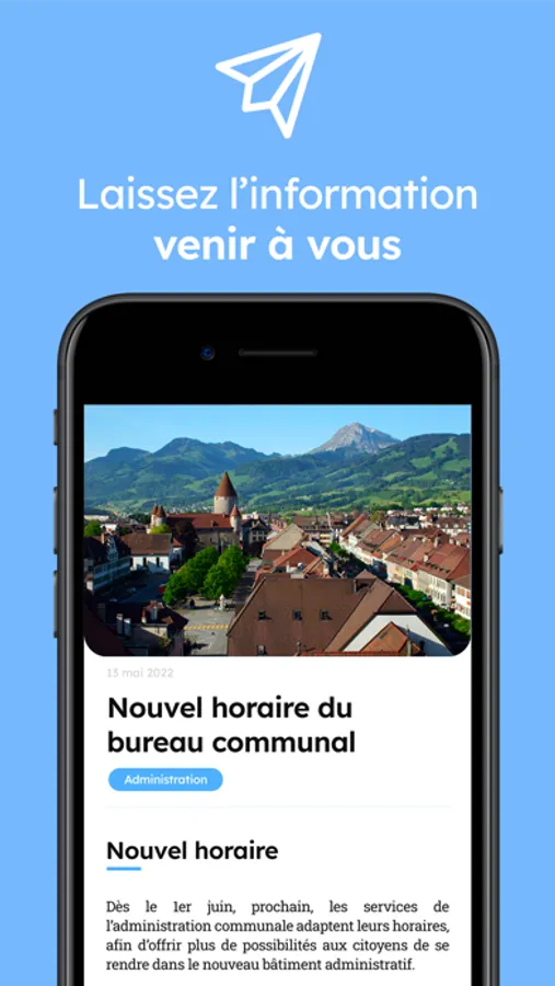 Aujourd’hui, les administrations n’ont aucun moyen de communiquer en temps réel avec leurs habitants. C'est pourquoi l’Association Régionale la Gruyère a coordonné la mise en place de cette application à disposition des communes et des principales institutions du district.
