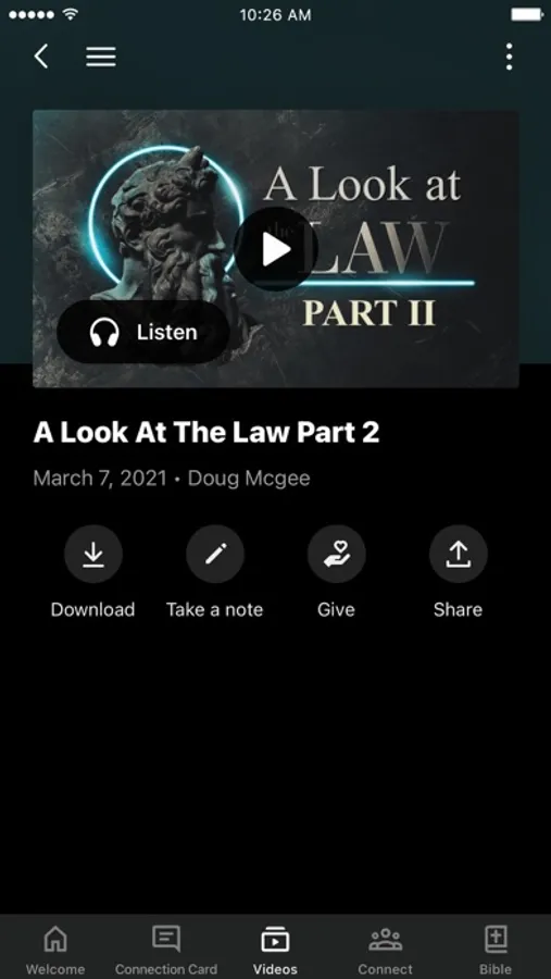 This app will help you stay connected with the day-to-day life of our church. With this app you can: watch or listen to past messages; stay up to date with push notifications; share your favorite messages via Twitter, Facebook, or email; and download messages for offline listening.