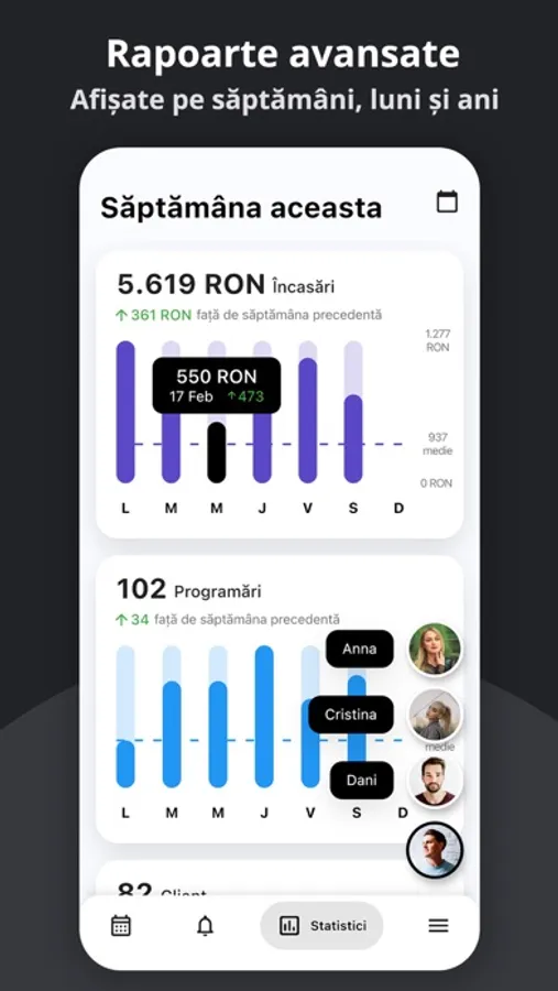 - Rapoarte și statistici avansate pentru a măsura performanța business-ului tău.