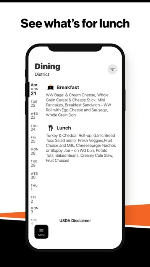 Within the dining section, you’ll find an easy to navigate, weekly menu, sorted by day and meal type.