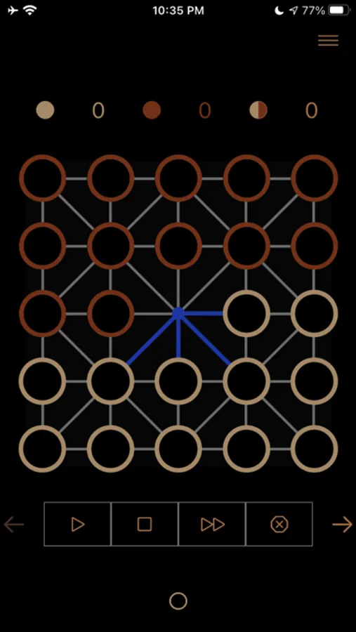 Qirkat – also known as alquerque – is a board game that was popular in Medieval Spain, played by kings and queens and caliphs and commoners alike. Although it evolved into other popular games like checkers, qirkat itself was largely forgotten – until now. Play against another human or the AI – or watch the AI play itself. Includes documentation, move suggestions, analysis tools, and three short stories.