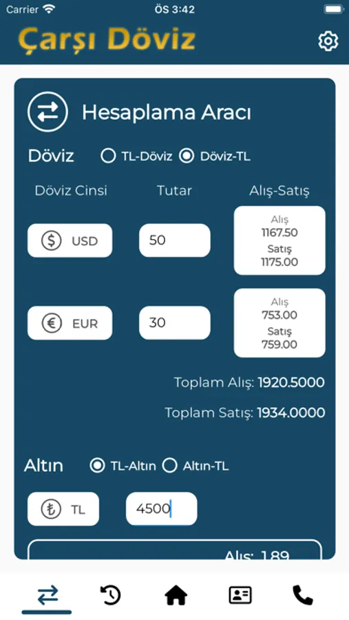 Dolar, Euro ve Altın fiyatları uygulamasıdır.