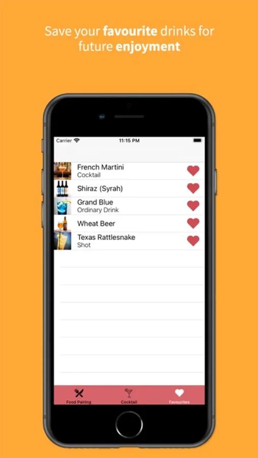 Aperitif also lets you save your favourite cocktails and liquor varieties, allowing you to view them at your leisure.
