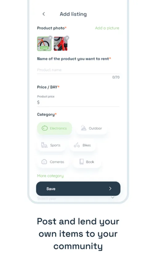 Introducing Rentr! Rentr is a peer to peer rental marketplace. With Rentr you can safely rent and lend items from your community. When you post an item people from your community will be able to see that item and if they choose to rent your item we make sure you are covered from any accidents or if the item is not returned!