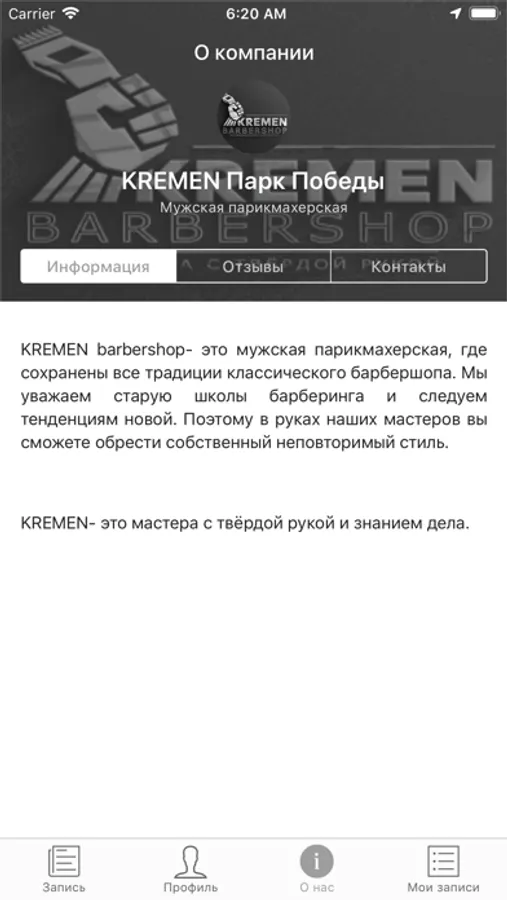 Приложение KREMEN barbershop- это отличный вариант записи на стрижку, в любое время суток. Просто выбери услугу, своего мастера, дату и время. И добро пожаловать в KREMEN.