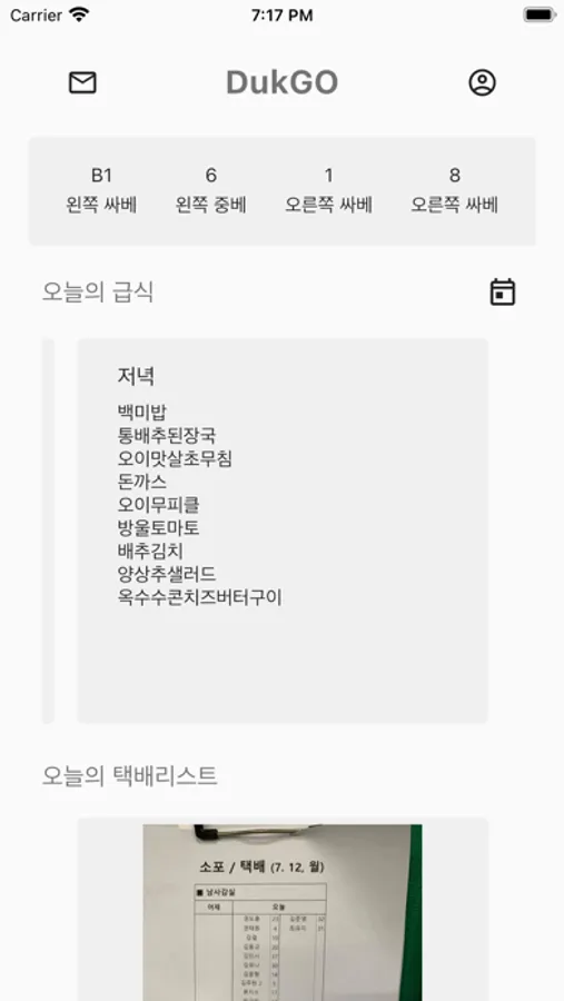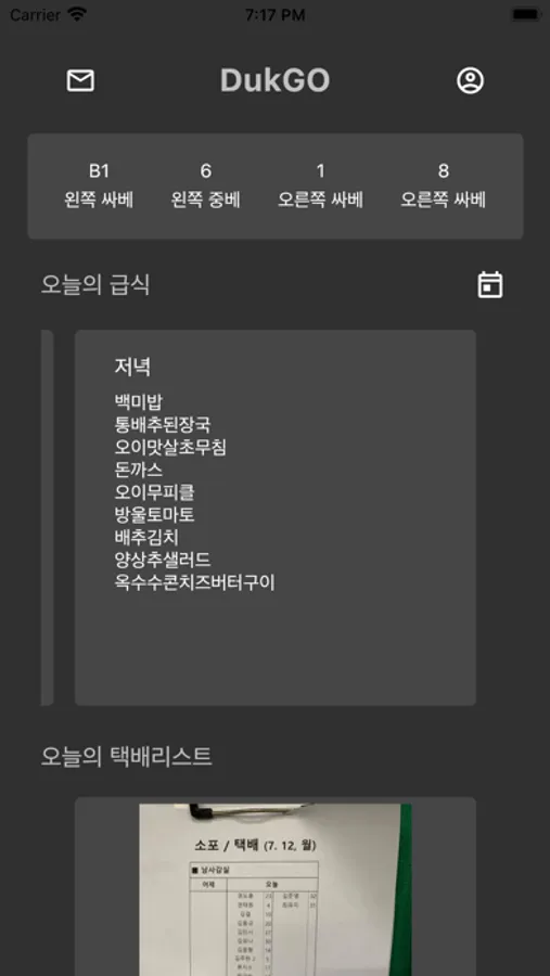 DukGO(덕고)는 2020년 2학기 융합프로젝트의 DukGO팀에서 제작한 민족사관고등학교 학생들의 편의를 위해 개발된 앱입니다. 엘리베이터, 급식, 택배, 학생법정 4가지 항목을 한 눈에 확인할 수 있도록 제작하였습니다.