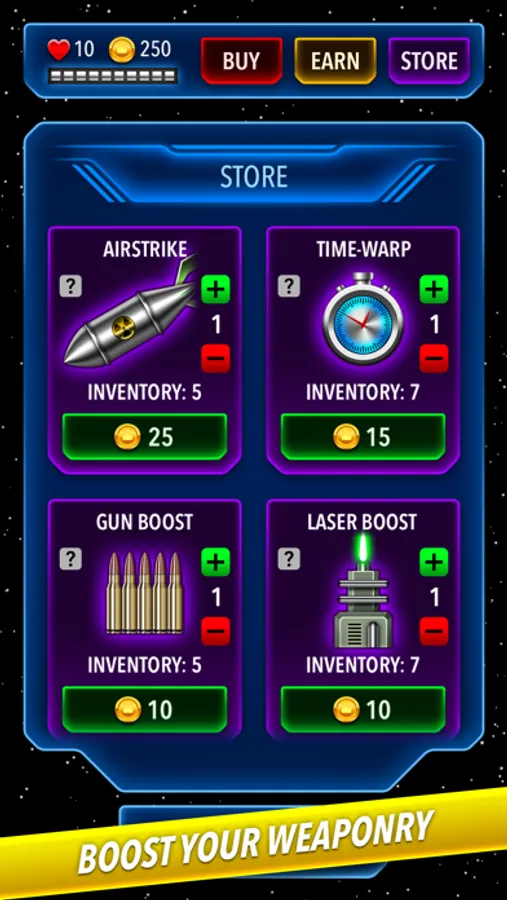 Play the worlds most Addictive Action-Packed, Smash-Hit strategy game. Go head-to-head with the Big Bad Creeps from the deepest parts of the Galaxy, and assemble your finest Weapons of Warfare as you prepare for battle against an onslaught of merciless Space Invaders with an appetite for revenge.