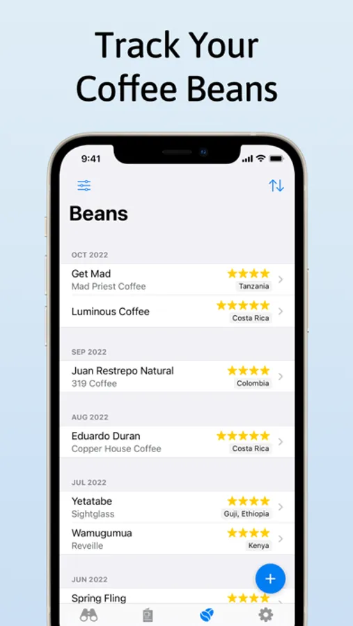 If you like trying out new coffee beans, Aeromatic lets you track your beans and rate them from 1 to 5 stars.