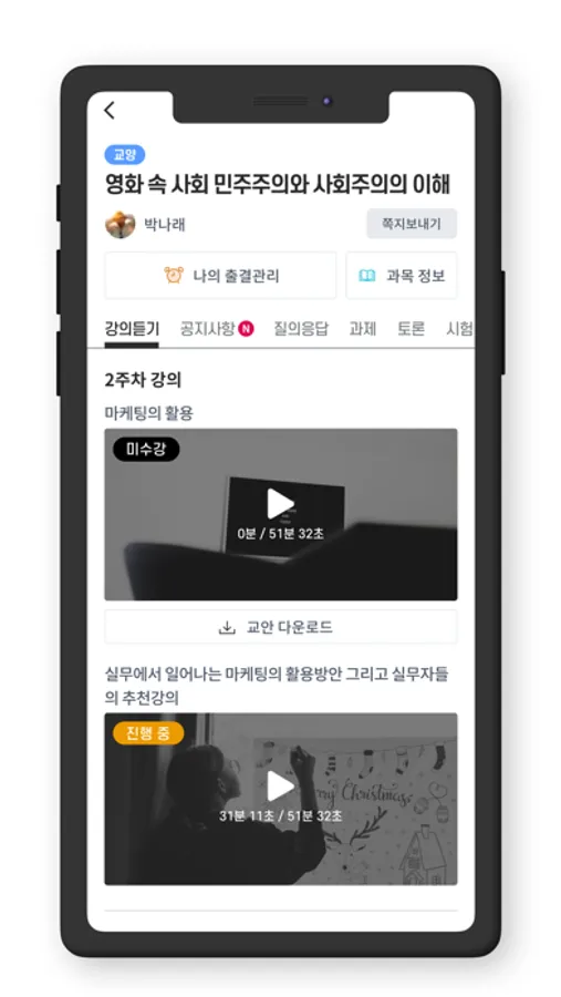 기존의 웹으로 접속하던 온라인 강의를 앱으로 들을 수 있습니다.