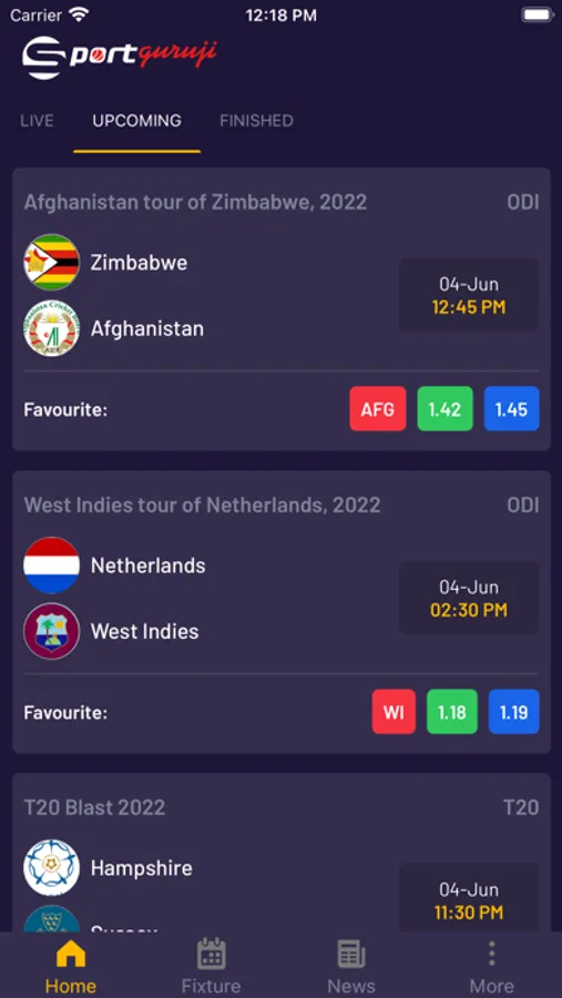 2. On dashboard 3 days Live Score, Schedule and result Match Available