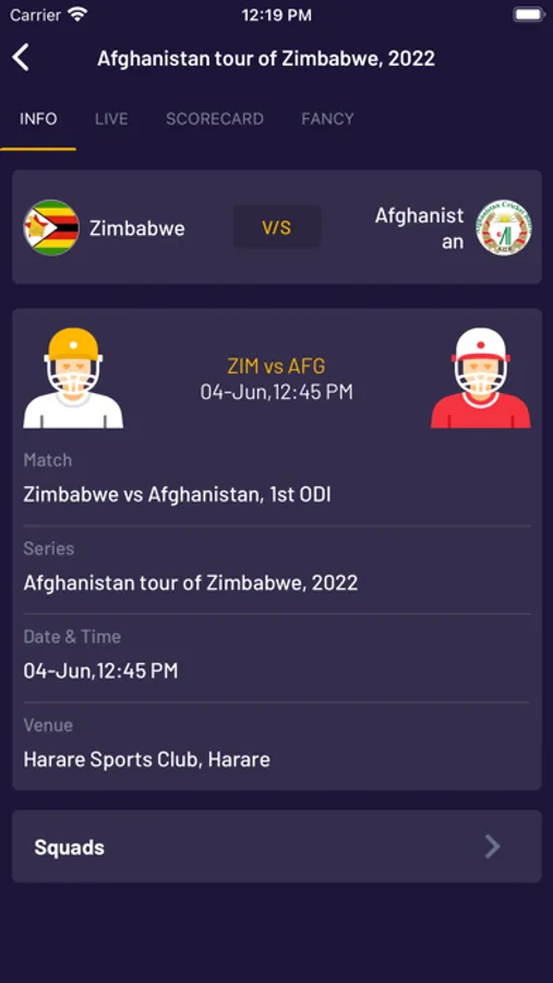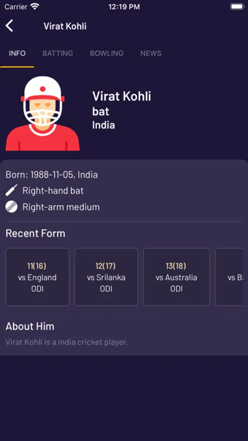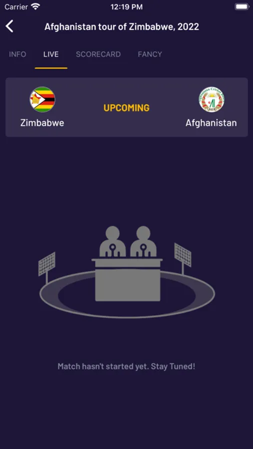 Download the Cricket Live scoring app with ball by ball scoring and live commentary. Best Screen experience and performance.