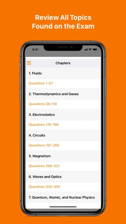 This free application includes all questions in Chapter 1 - Fluids (1-57). The remaining 443 questions are available through an in-app purchase of $15.99.