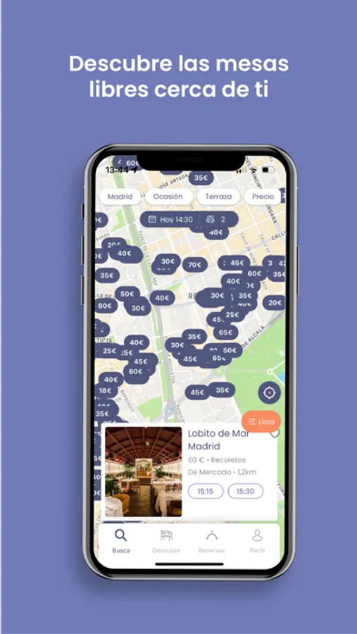 - Explorar las mesas disponibles por ubicación con el modo mapa