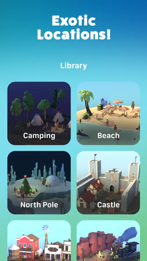 - Lots of levels to explore: camping, store, beach, castle, farm, forest, North Pole, Japan and Moon!