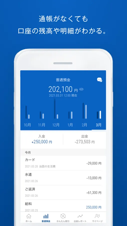 ○普通預金残高・入出金明細の照会、入出金グラフ表示