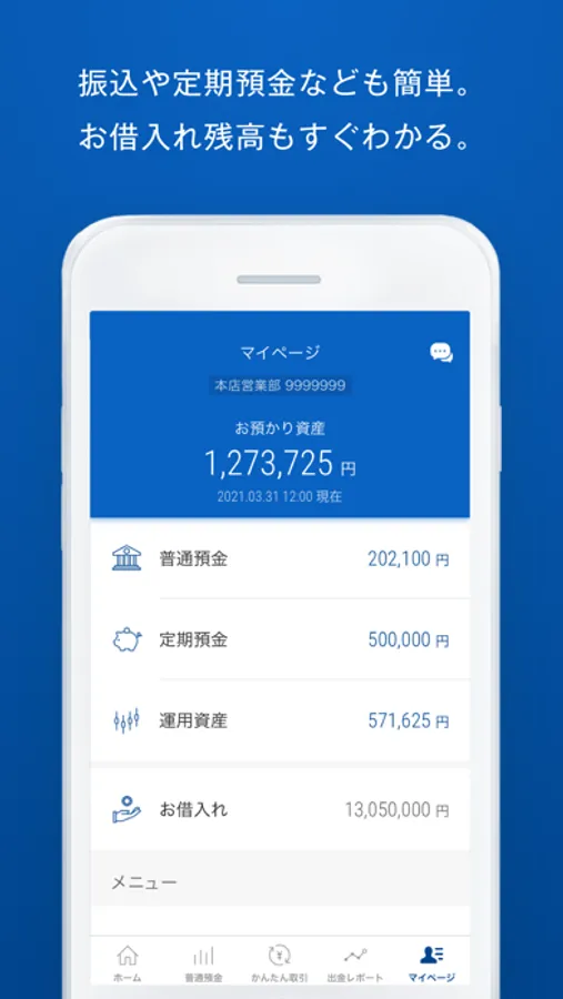 口座の残高・明細の確認、振込や定期預金などのお取引が簡単にできます。