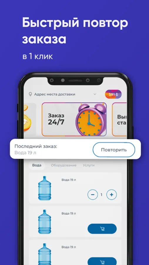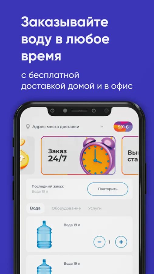Заказать питьевую бутилированную воду домой или в офис теперь можно в один клик! Бесплатная доставка, простой интерфейс и персональные скидки для пользователей приложения.