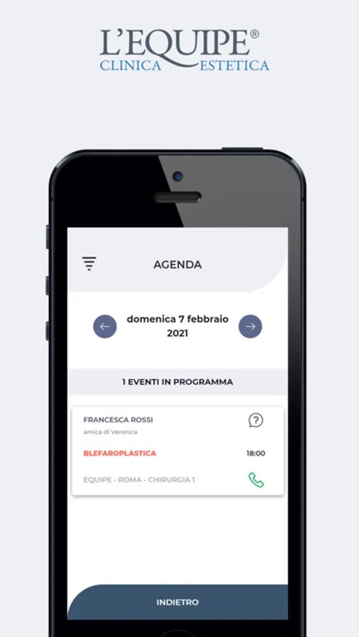 Possibilità inviare allo STAFF di EQUIPE CLINICA ESTETICA una conferma o disdetta dell’appuntamento.