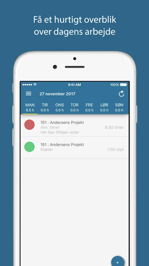 DataLøn Tid lader medarbejdere registrere arbejdstid, fravær, udlæg m.v., lige når det passer ind - fra dag til dag og fra sag til sag. Nemt og intuitivt fra telefonen.