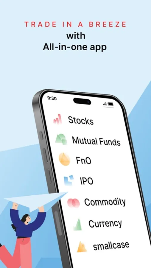- Enables investments in Stocks, Mutual Funds, ETFs, F&O, Commodities, Currencies, Options,IPO applications and more