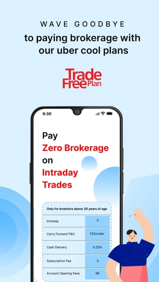 - Invest in Mutual Funds with a min. amount of Rs. 500 /month & intraday trades set at Rs. 0!