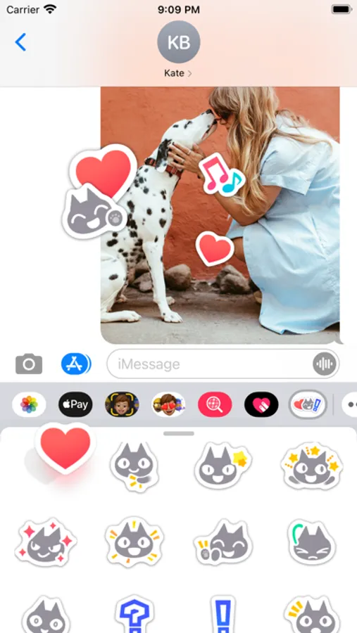 Select the ones that best express your feelings and send them out as text messages or peel them and place them over bubbles, pictures or other stickers in iMessage. Also use them as camera effects both in iMessage and FaceTime.
