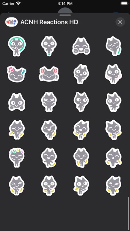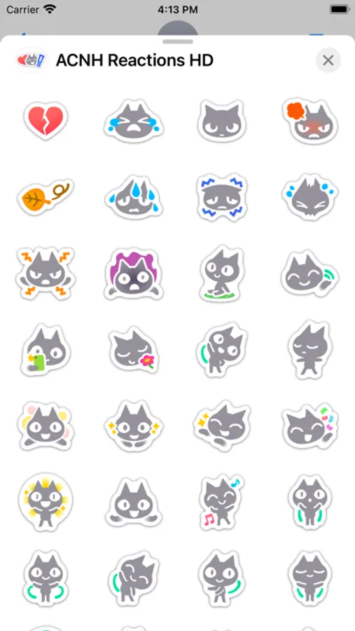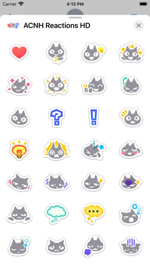 All stickers in this collection are arranged in the same order as in the Animal Crossing: New Horizons game Reactions menu.