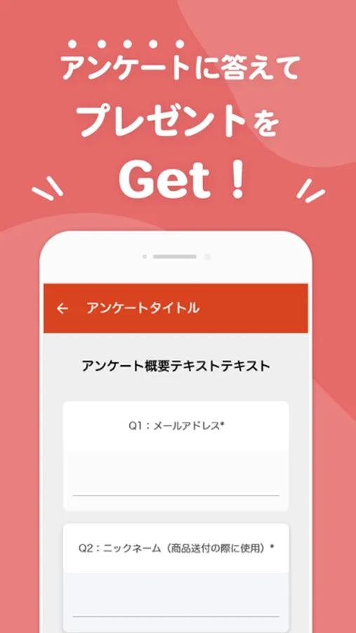 アンケートに答えると、抽選でプレゼントがもらえるアプリ。
