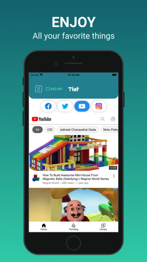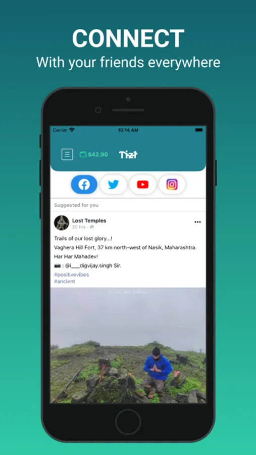 TIZR offers a wealth of features that not only helps you view your social media feeds in one place, but also allows you to view statistics on your daily engagement on the App. Currently, we support Facebook, Twitter, Instagram and YouTube with more networks being added soon! Sign up for free today!